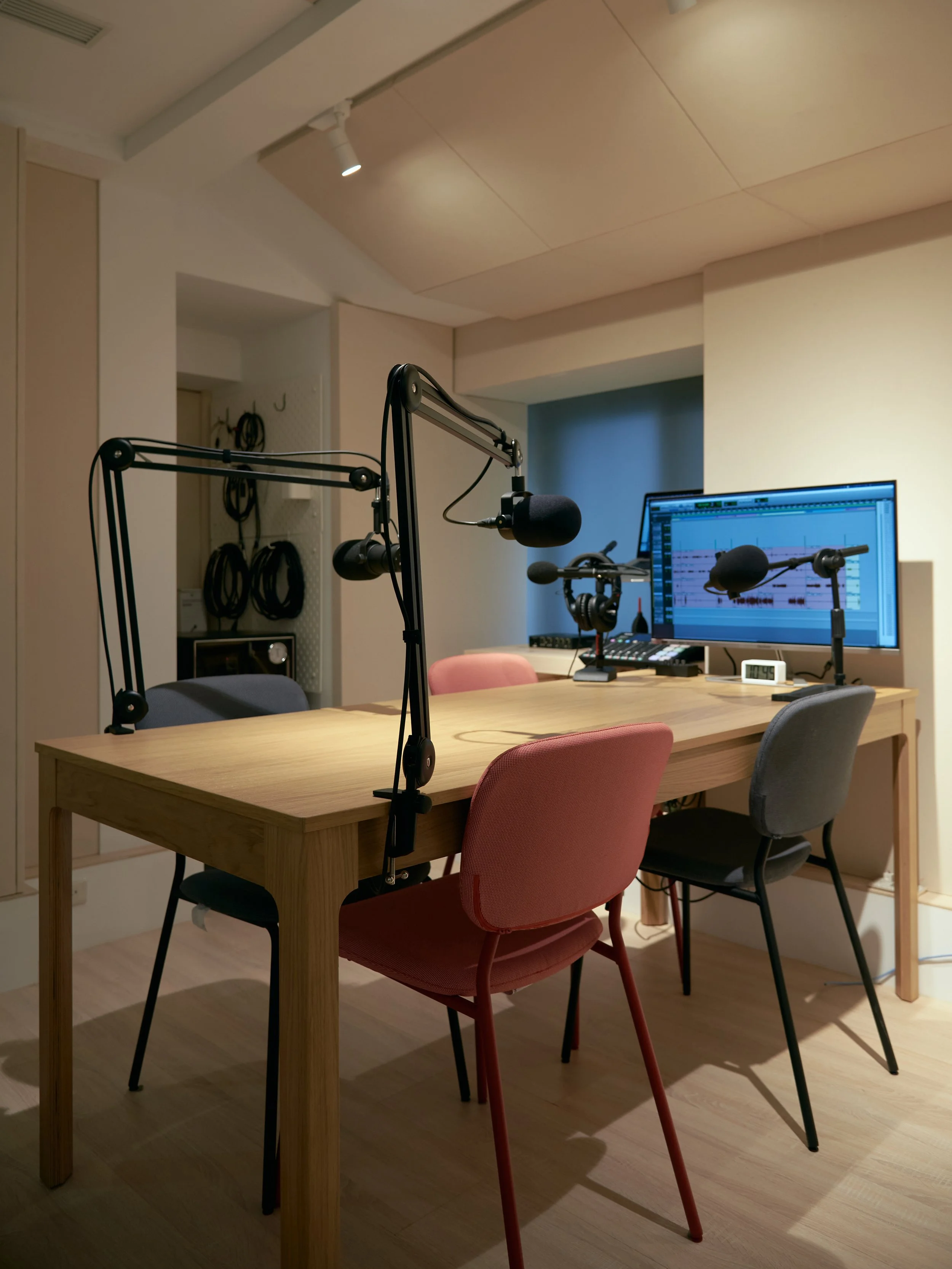 無論是準備線上簡報、進行遠端面試、錄製 Podcast,或拍攝課程影片,房子共同工作室都能提供所需的安靜環境與專業設備,讓內容製作更順利。